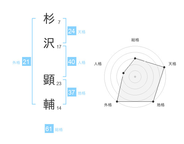 杉沢 顕輔さんの総格は61画の3点!