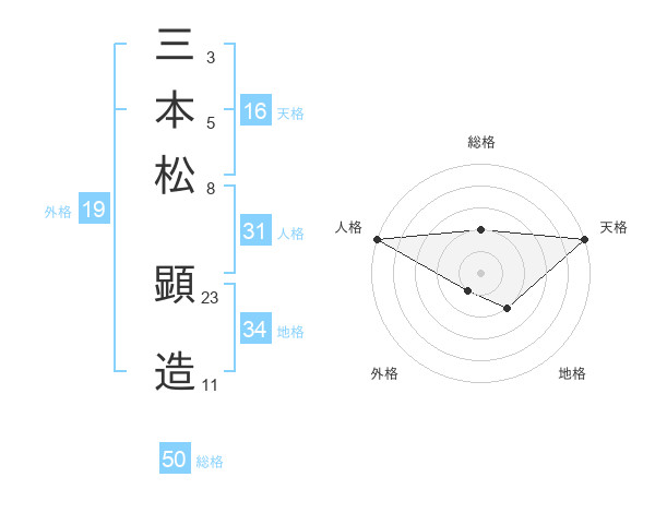 三本松 顕造さんを姓名の画数から五運を鑑定