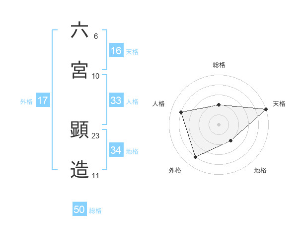 六宮 顕造さんを姓名の画数から五運を鑑定