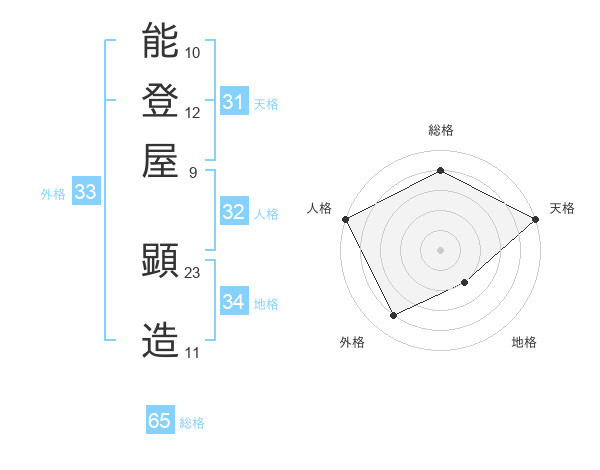能登屋 顕造さんの総格は65画の4点!