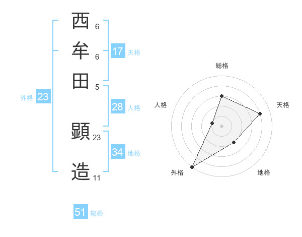 西牟田 顕造さんを姓名の画数から五運を鑑定