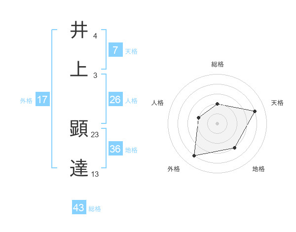 家系が持つ宿命的な運勢を表します。祖先から受け継いだ苗字ですので自分の力が及びません。家柄を象徴します。