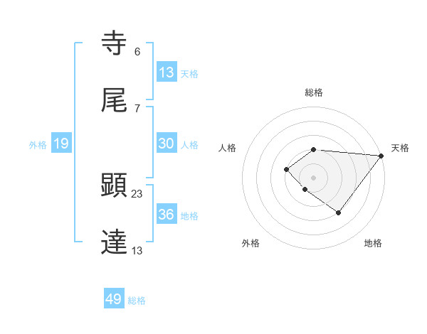 寺尾 顕達さんの天格は13画の5点!