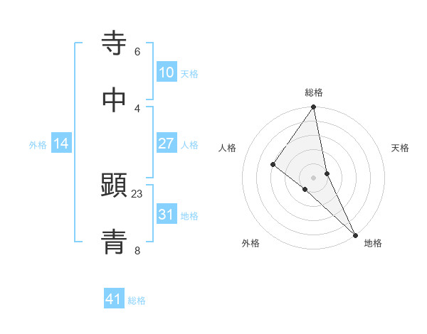 寺中 顕青さんの総格は41画の5点!