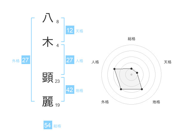 八木 顕麗さんを姓名の画数から五運を鑑定