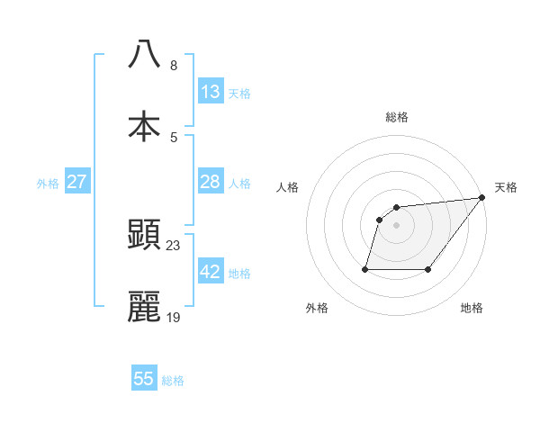 八本 顕麗さんを姓名の画数から五運を鑑定