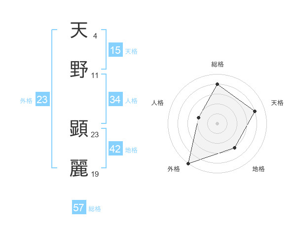 天野 顕麗さんの総格は57画の4点!