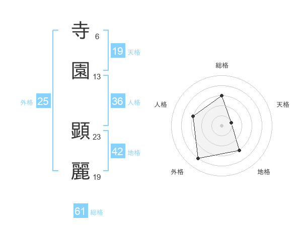 寺園 顕麗さんの総格は61画の3点!