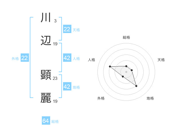 川辺 顕麗さんを姓名の画数から五運を鑑定