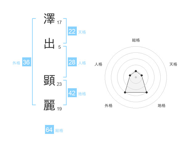 澤出 顕麗さんの総格は64画の1点!