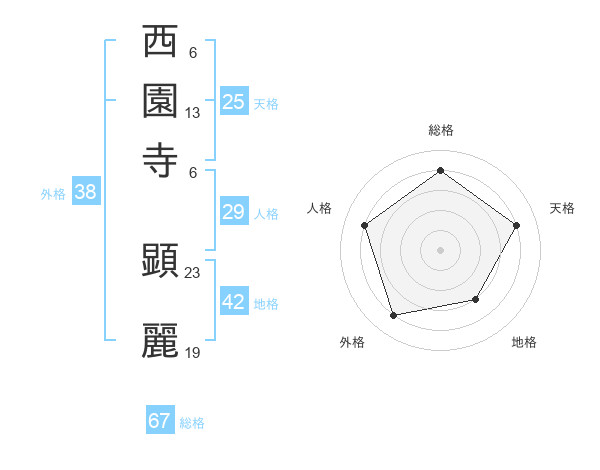 西園寺 顕麗さんの総格は67画の4点!