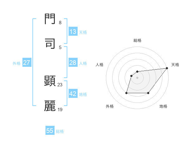 門司 顕麗さんの天格は13画の5点!