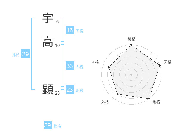 宇高 顕さんの総格は39画の5点!