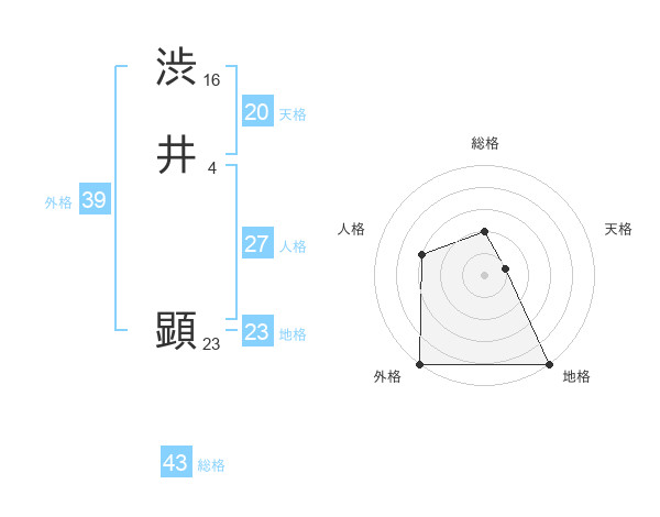 渋井 顕さんの総格は43画の2点!