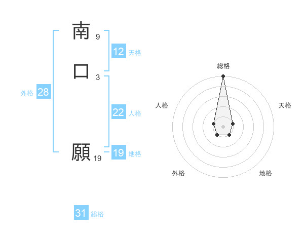 南口 願さんの総格は31画の5点!