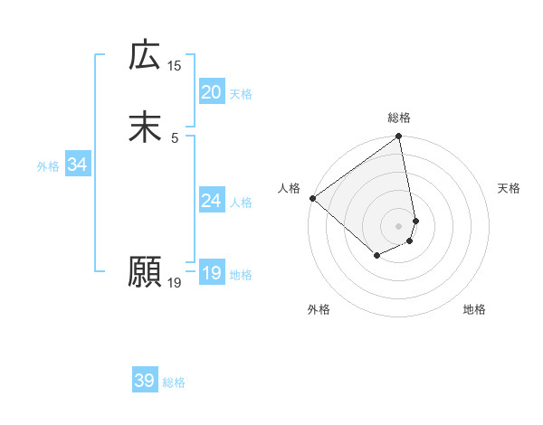 広末 願さんの総格は39画の5点!