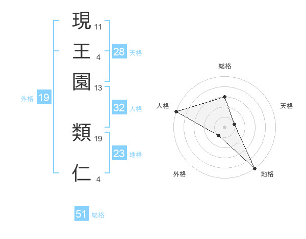 現王園 類仁さんを姓名の画数から五運を鑑定