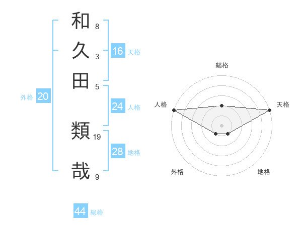 和久田 類哉さんを姓名の画数から五運を鑑定