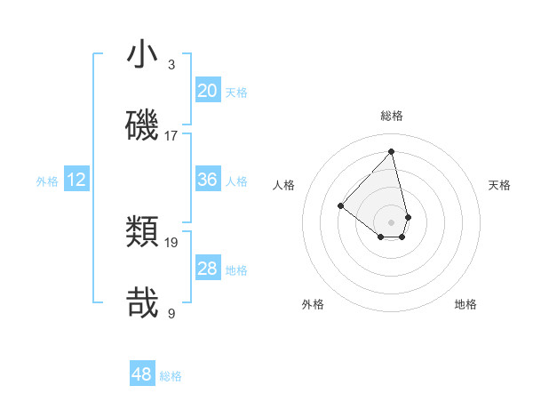 小磯 類哉さんを姓名の画数から五運を鑑定