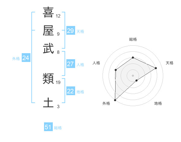喜屋武 類土さんを姓名の画数から五運を鑑定