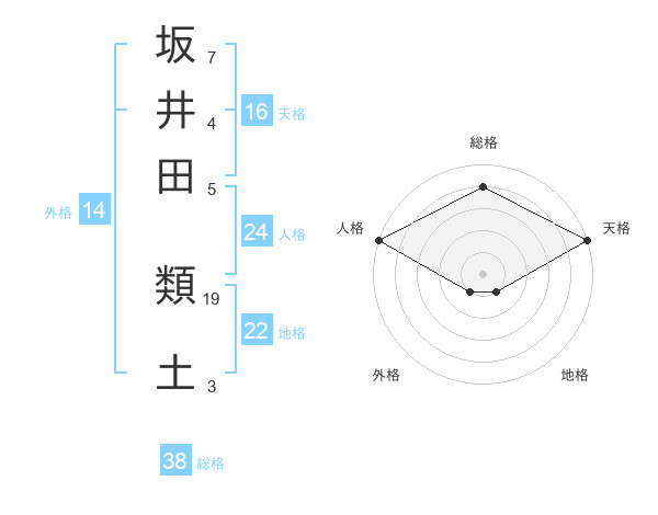 坂井田 類土さんを姓名の画数から五運を鑑定