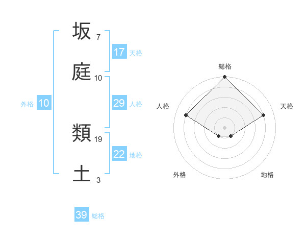 坂庭 類土さんの総格は39画の5点!