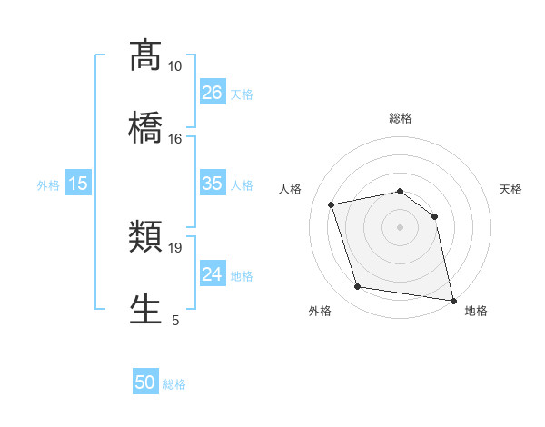 髙橋 類生さんの総格は50画の2点!