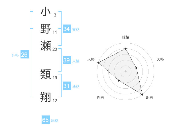 小野瀬 類翔さんを姓名の画数から五運を鑑定