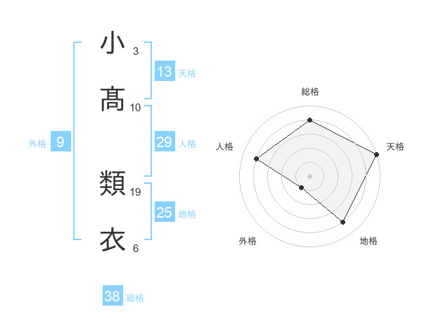 小髙 類衣さんを姓名の画数から五運を鑑定