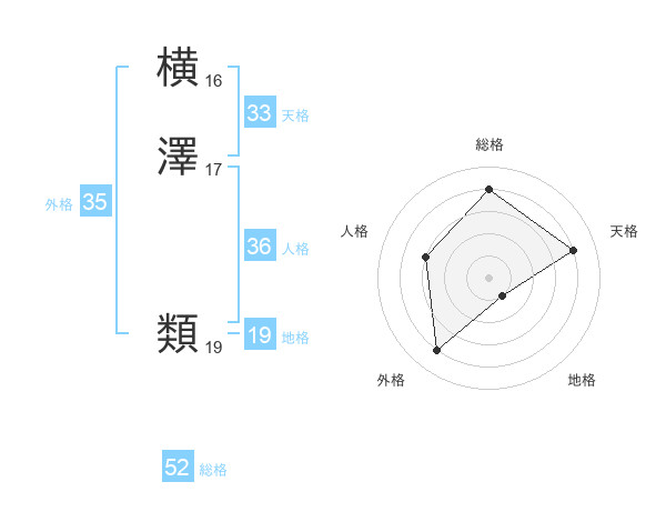 横澤 類さんの総格は52画の4点!