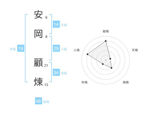 安岡 顧煉さんを姓名の画数から五運を鑑定