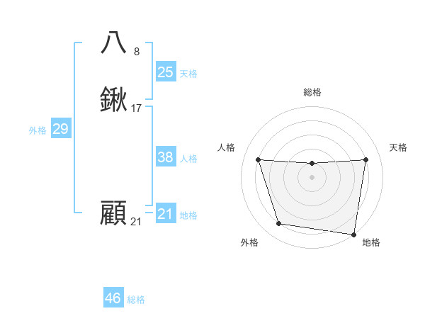八鍬 顧さんを姓名の画数から五運を鑑定
