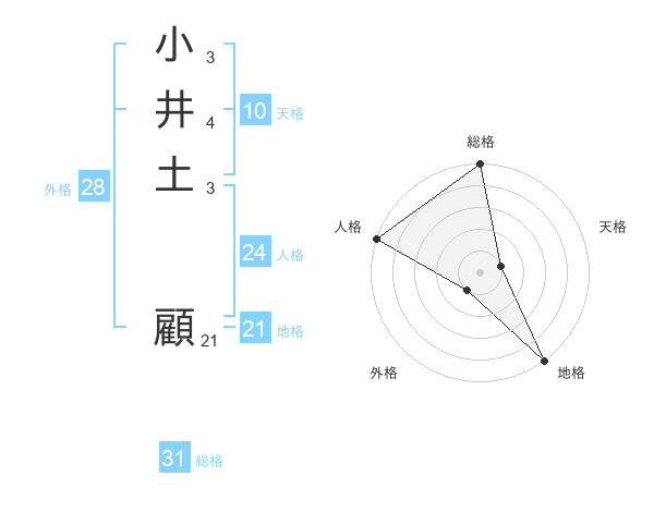 小井土 顧さんの総格は31画の5点!