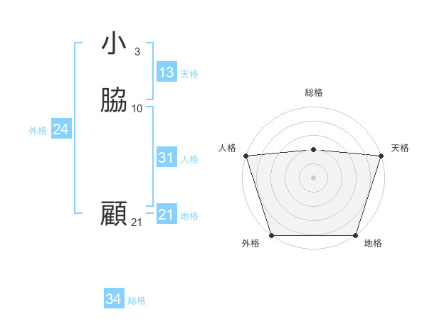 小脇 顧さんの総格は34画の2点!