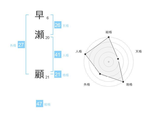 早瀬 顧さんの総格は47画の5点!