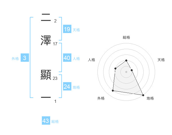 二澤 顯一さんの天格は19画の1点!