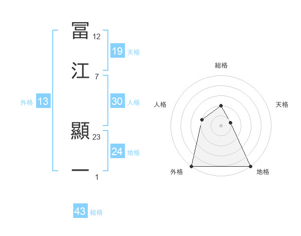 冨江 顯一さんを姓名の画数から五運を鑑定