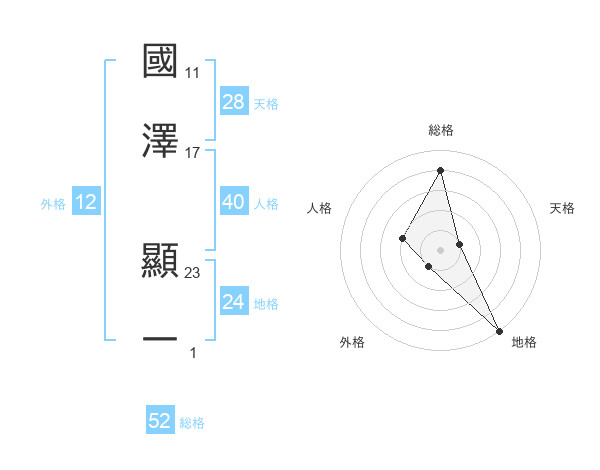國澤 顯一さんの総格は52画の4点!