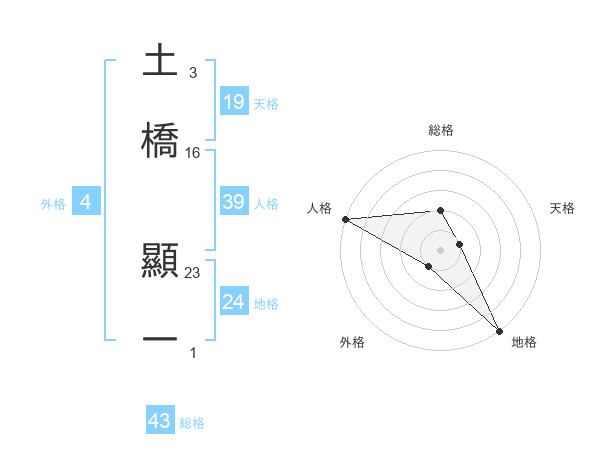 土橋 顯一さんを姓名の画数から五運を鑑定