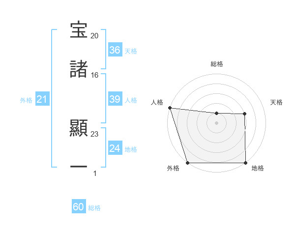 宝諸 顯一さんの総格は60画の1点!