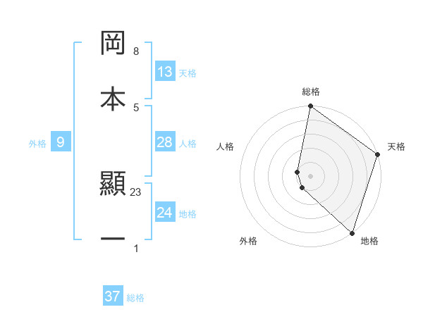 岡本 顯一さんの総格は37画の5点!
