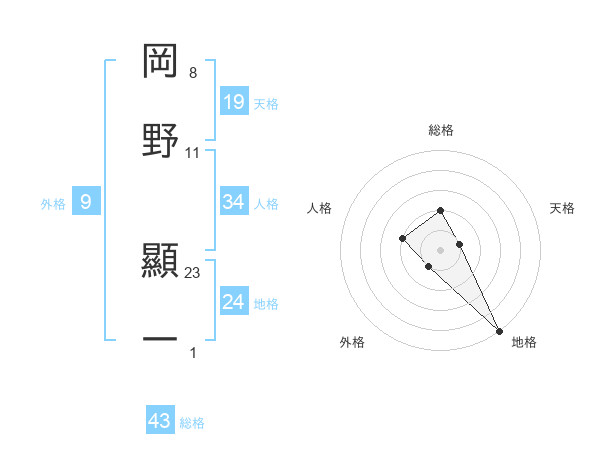 岡野 顯一さんを姓名の画数から五運を鑑定
