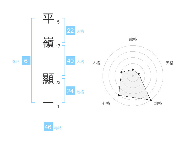 平嶺 顯一さんの天格は22画の1点!