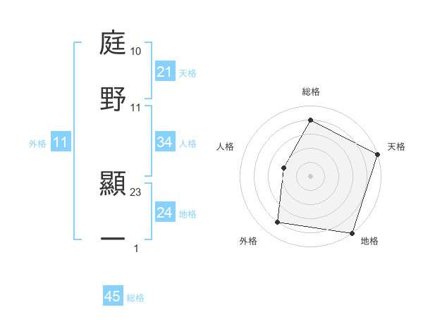 庭野 顯一さんの総格は45画の4点!