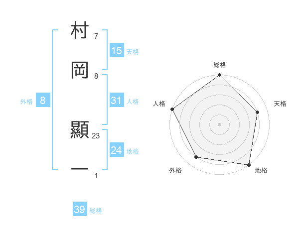 村岡 顯一さんの総格は39画の5点!
