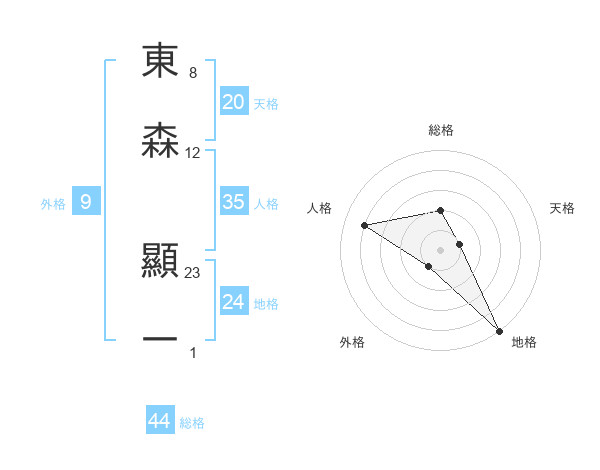 東森 顯一さんの総格は44画の2点!