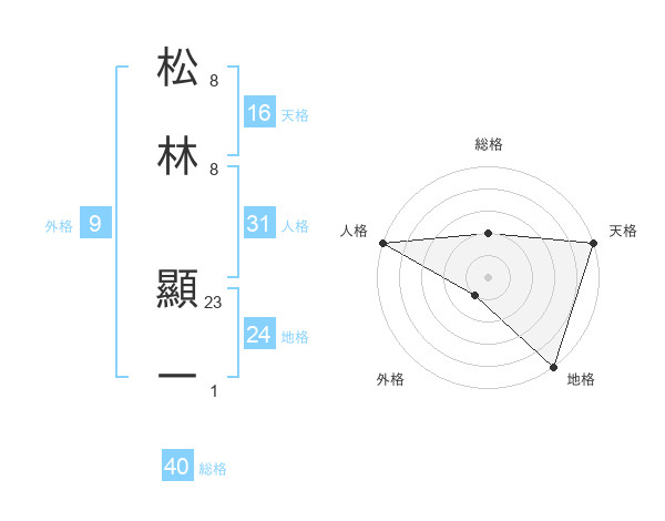 松林 顯一さんの天格は16画の5点!
