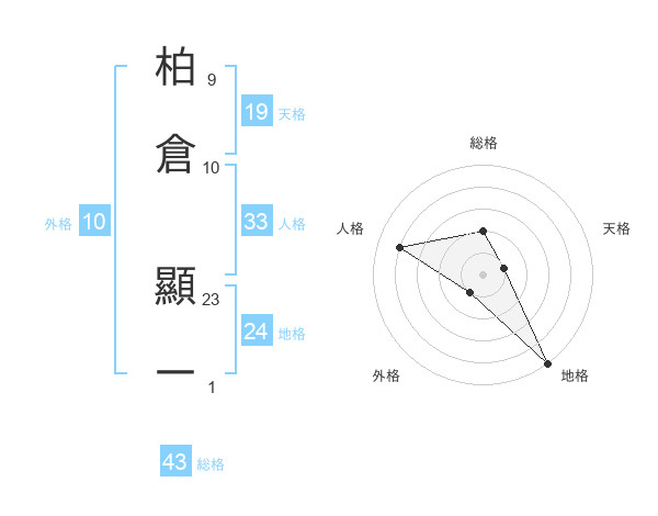 柏倉 顯一さんの天格は19画の1点!