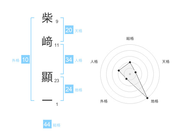 柴﨑 顯一さんの総格は44画の2点!