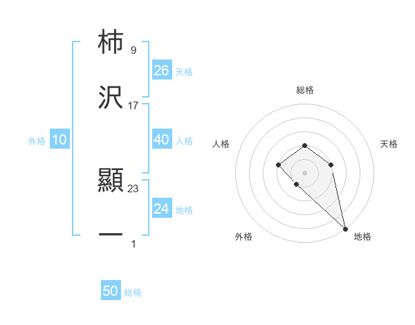 柿沢 顯一さんの総格は50画の2点!